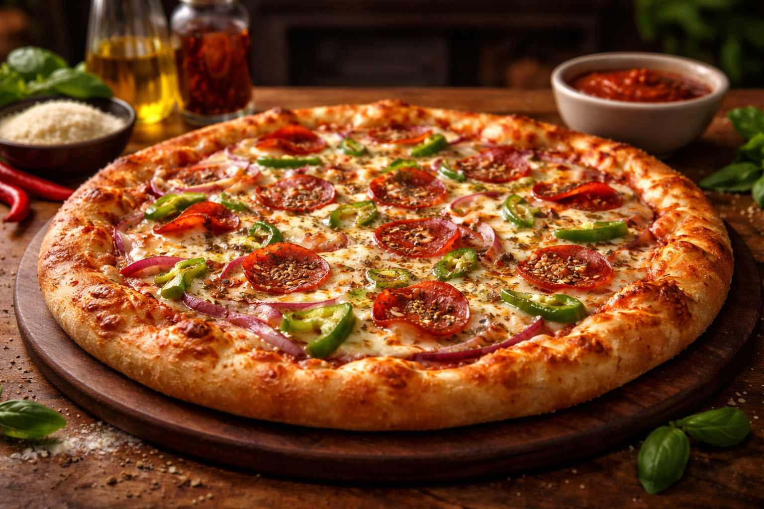 Sabores clássicos, pizzas bem servidas e pedido simples pelo WhatsApp.